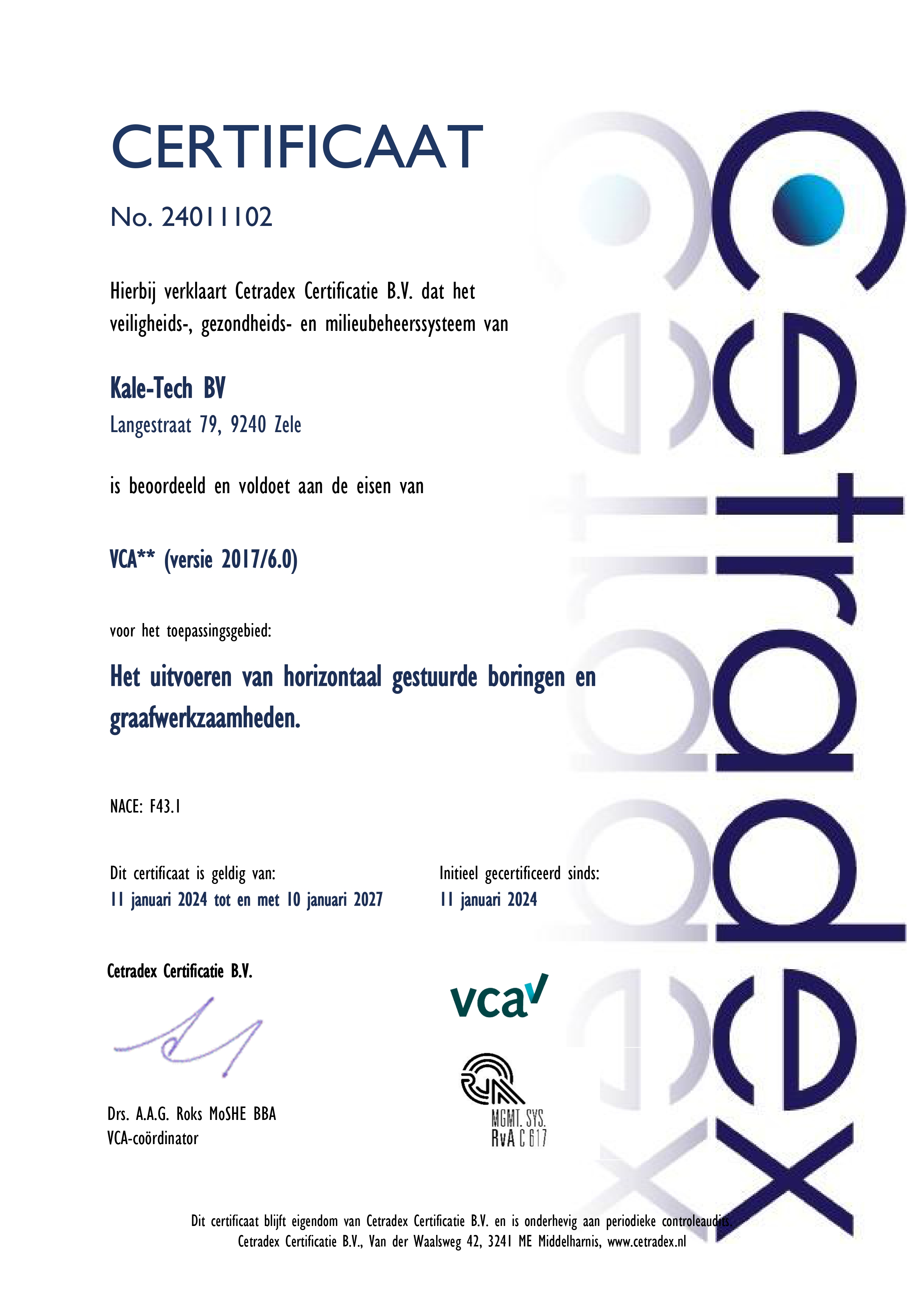 werkzaamheden. Het VCA** certificaat is een bewijs van onze inzet voor deze waarden.